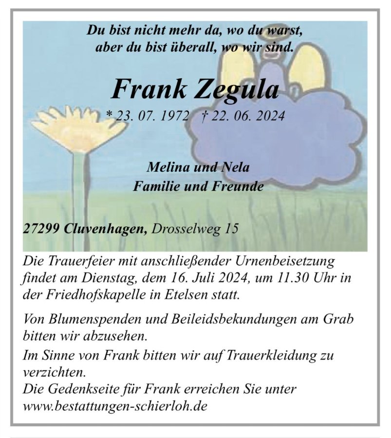 Wir hatten in letzter Zeit keinen Kontakt. Zusammen haben wir aber die Grundschulzeit erlebt. Du hast immer viel gelacht und hattest immer ein schelmisches Lächeln im Gesicht. Gerade heute habe ich von Deiner Reise erfahren und bin geschockt. Irgendwann sehen wir uns wieder. Der Familie wünsche ich jeden Tag aufs Neue Kraft, Zuversicht und Hoffnung
